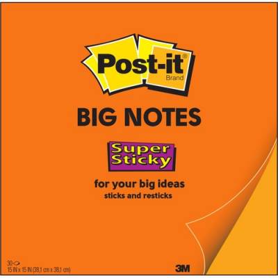 Think big and ignite your creativity with Post-it Super Sticky Big Notes. Bright, colorful notes are designed for horizontal collaboration with sheets that can be displayed on smooth, vertical surfaces. Post-it Super Sticky Big Notes encourage you to think big and dream big. They stick and restick to help you be more productive. Neon orange grabs attention. The notepad is portable to capture ideas wherever you go. Use it with Post-it Notes and Post-it Rolls and visualize your ideas taking shape. Post-it Super Sticky Big Notes pad includes 30 sheets. More from the Manufacturer