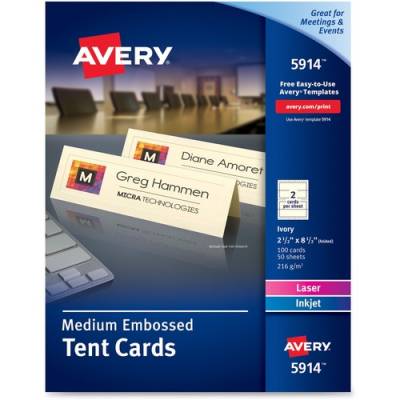 Avery Medium Tent Cards, Embossed Ivory, Uncoated, Two-Sided Printing, 2-1/2" x 8-1/2", 100 Cards (5914)