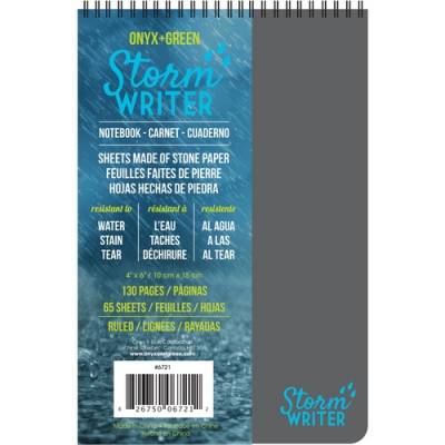 Notebook features water-resistant, stain-resistant pages to keep your writing safe from accidental mishaps. Double-wire binding allows each page to sit flat on your desk for easy handwriting. 4" x 6" notebook is perfect for use when working outdoors.