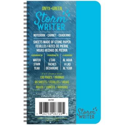 Notebook features water-resistant, stain-resistant pages to keep your writing safe from accidental mishaps. Double-wire binding allows each page to sit flat on your desk for easy handwriting. 3" x 5" notebook is perfect for use when working outdoors.